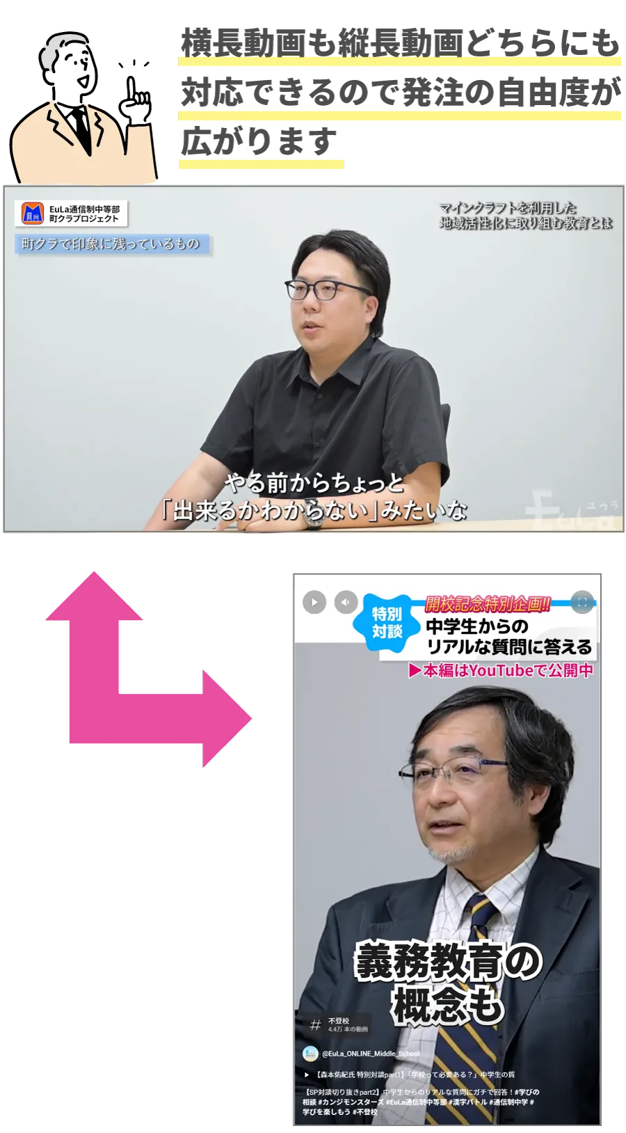 本サービスは対談やインタビューに特化した人物撮影がメインですが、トーク内容は店舗紹介、商品プロモーション、社員の声、イベント告知など、様々なシーンで活用できます。